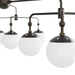 With Celestial Inspirations, The Utica Chandelier Is Designed With Frosted Glass Globes That Orbit The Light'S English Bronze Steel Pipe Frame. The Eclectic Fixture Features Round Knobbed Accents That Punctuate The Connection Point Of Each Arm. Damp-Rated, Although Limited Covered Outdoor Conditions May Affect Finish.