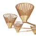 Natural Materials And Sleek, Midcentury Styling Unite In The Ventura Chandelier. Conical Basket-Woven Shades Encircle An Eight-Arm, Pipe Framework In An Antique Brass Iron Finish. Natural Rattan Appears Again As A Textural Accent, Tightly Wrapping Each Arm. Finish Will Vary. Damp-Rated, Although Limited Covered Outdoor Conditions May Affect Finish.