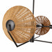 Contemporary silhouettes meet traditional materials. A quartet of umbrella shades in natural rattan are suspended with streamlined fixture plated in English bronze steel. Suspended from a sleek matching canopy, each reflective shape allows a play of light and shadow. Ideal for both a modern and coastal environment. Finish will vary.