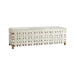 The artisan beauty of these white hide bands handwoven into a simple basket weave pattern that is stretched around a sleek and modern rose gold steel frame makes this bench both a statement piece and a practical seating option. Influenced by equestrian culture and the juxtaposition of the materials this bench brings texture and modern style to any room. Hide will vary.