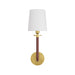 A Classic Wall Sconce Silhouette Gets A Fresh Update, With A Tightly Wrapped Arm In Rich, Oxblood Leather, Creating Contrast And Texture. The Versatile Illuminator Is Designed With An Antique Brass Steel Mount And A White Linen Shade. Finish Will Vary. Damp-Rated, Although Limited Covered Outdoor Conditions May Affect Finish.