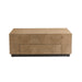 Reminiscent of a parquet floor, our artisan table was carefully finished in oyster, techniqued with an oyster cut oak veneer to highlight the concentric beauty of tree rings. Delivering a feeling of movement, this piece is mounted on a recessed base of bronze iron and accented with a single spacious drawer. Finish will vary.