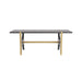 The Brutalist-Inspired, Westheimer Dining Table Is Stunning From Any Angle. Crafted In Umber Mango Wood, The Table Is Designed With Bowtie-Shaped Pedestals That Feature A Wire-Brushed Finish And Hammered Antique Brass Clad That Frames Each Base, Further Highlighting The Bowtie Silhouette. The Rectangular, Six-Seat Table Also Features An Antique Brass Stretcher. Finish Will Vary.