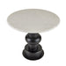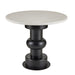 Adding a playful twist to a traditional William and Mary turned leg, this updated end table pairs an ebony oak wood pedestal with a circular top of white sandblasted marble. A bronze-plated iron base anchors the exaggerated proportions. Marble will vary.