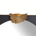 Clean, contemporary forms and intriguing materials inform the sleek Envy. Framed in antique brass iron and adorned with ebony mango wood and sculptural antique brass elements reminiscent of a gingko leaf, this style can be hung horizontally or vertically. Cleat at the back for secure display.