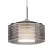 The Belu pendant features a ribbed drum glass shade that adds a touch of elegance and sophistication to any space. The glass shade has horizontal ribbed detailing and a inner white acrylic shield, which creates a beautiful and distinctive visual effect when illuminated. The cord pendant fixture is equipped with a 10' SVT cordset and an "Easy Install" dome monopoint canopy. These stylish and functional luminaries are offered in a beautiful Satin Nickel finish.