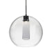 The Eli Pendant features a double layer design creates a captivating visual effect. A clear outer globe encases a unique inner clear bubble glass. Light dances and refracts through the textured bubbles, casting delightful patterns and adding a touch of whimsy to your space. The cord pendant fixture is equipped with a 10' SVT cordset and an "Easy Install" dome monopoint canopy. These stylish and functional luminaries are offered in a beautiful Black finish.