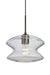 The Zen Clear Pendant is a transitional design composed of a transparent Clear ``Hour-Glass`` shaped glass , with an interesting bubble pattern blown randomly throughout the glass. The pleasing play of light through the shade`s bubble accents makes for a striking affect, created by the exposed light source positioned inside the shade. The cord pendant fixture is equipped with a 10` SVT cordset and an ``Easy Install`` dome monopoint canopy. These stylish and functional luminaries are offered in a beautiful brushed Bronze finish.