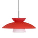 Trilo 15 is comprised of three complementary glass segments, resulting in a playful glass display. Our Red Matte glass is a vibrant primary red pressed glass, with a white inner layer. This décor can add an edgy, classic, or contemporary feel to any room. When lit this gives off a light that is functional and energetic. The smooth satin finish on the clear outer layer is a result of an extensive etching process. This handcrafted glass uses a process where every glass is consistently produced using a press mold, keeping variations to a minimum. The cord pendant fixture is equipped with a 10' SVT cordset and a low profile flat monopoint canopy. These stylish and functional luminaries are offered in a beautiful Black finish.
