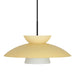 Trilo 15 is comprised of three complementary glass segments, resulting in a playful glass display. Our Champagne glass is a light yellow pressed glass, with a white inner layer. When lit this gives off a light that is functional and soothing. Champagne is a pleasing neutral color that suits almost any décor. The smooth satin finish on the clear outer layer is a result of an extensive etching process. This handcrafted glass uses a process where every glass is consistently produced using a press mold, keeping variations to a minimum. The cord pendant fixture is equipped with a 10' SVT cordset and a low profile flat monopoint canopy. These stylish and functional luminaries are offered in a beautiful Black finish.