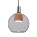 The Benji Smoke Pendant is composed of an outer trans smoke glass globe, with an inverted lip blown into the glass bottom and an inner wood globe for concealing the light source. The addition of real wood perfectly complements the glass and adds a splash of warmth. The cord pendant fixture is equipped with a 10' SVT cordset and a low profile flat monopoint canopy. These stylish and functional luminaries are offered in a beautiful Black finish.