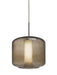 The Niles Smoke/Opal Pendant is composed of a broad tranparent smoke glass cylinder, with an interesting bubble pattern blown randomly throughout the glass and an inner opal cylinder for concealing the light source. The pleasing play of light through the bubble accents make for a striking affect, along with the popular theme of this transitionally designed pendant. The cord pendant fixture is equipped with a 10` SVT cordset and an low profile flat monopoint canopy. These stylish and functional luminaries are offered in a beautiful brushed Bronze finish.