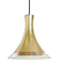 Inspired by the natural beauty of the Hibiscus flower, our Rio Gold Pendant is a large scale fluted European glass shade, specifically designed for spacious environments. Our Gold Foil glass has combined sparkling and metallic aesthetics, with the inner foil casting a compelling warm glow when illuminated. The composition employs textured metal foil applied to the inner surface of a glossy clear blown glass, with a polished cut ring artfully placed between the metal and the clear bottom edge. The cord pendant fixture is equipped with a 10` SVT cordset and an low profile flat monopoint canopy. These stylish and functional luminaries are offered in a beautiful Black finish.
