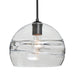 The Spirit 10 Clear Pendant is composed of a clear glass globe, with an interesting circular optical pattern blown as an additional layered ring along the interior wall of the glass. The dramatic play of light through the sculpted layer and onto adjacent surfaces make for a striking affect, along with the modest display of the lamp filament behind the glass. The cord pendant fixture is equipped with a 10' SVT cordset and a low profile flat monopoint canopy. These stylish and functional luminaries are offered in a beautiful Black finish.