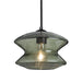 The Zen Moss Pendant is a transitional design composed of a transparent Moss "Hour-Glass" shaped glass , with an interesting bubble pattern blown randomly throughout the glass The pleasing play of light through the shade's bubble accents makes for a striking affect, created by the exposed light source positioned inside the shade. The cord pendant fixture is equipped with a 10' SVT cordset and a low profile flat monopoint canopy. These stylish and functional luminaries are offered in a beautiful Black finish.