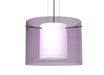 The Pahu is a distinctive double-glass pendant, with an inner opal cylinder centered within a transparent outer glass. Our Trans-Amethyst colored blown glass complements the soft white Opal cased glass, which can suit any classic or modern decor. Opal has a very tranquil glow that is pleasing in appearance, as the Trans-Amethyst glass sparkles with the accents from that glow. The smooth satin finish on the opalâ≢s outer layer is a result of an extensive etching process. This blown glass combination is handcrafted by a skilled artisan, utilizing century-old techniques passed down from generation to generation. The cable pendant fixture is equipped with three (3) 10` silver aircraft cables and 10` AWM cord set, and a low profile flat monopoint canopy. These stylish and functional luminaries are offered in a beautiful brushed Bronze finish.
