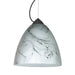 Vila has a classical bell shape that complements aesthetic, while also built for optimal illumination. Our Marble Grigio glass is a bright white cased glass, with inner opal and a glossy finish. The white color is accented by flowing marbleized black lines, and nestled between the inner opal and outer clear layers.  When lit the glass is vitalizing as well as stylish, that adds appeal to any environment. This blown glass is handcrafted by a skilled artisan, utilizing century-old techniques passed down from generation to generation. Each piece of this décor has its own artistic nature that can be individually appreciated. The cable pendant fixture is equipped with a 10' silver aircraft cable and AWM cordset, and a dome monopoint canopy. These stylish and functional luminaries are offered in a beautiful Black finish.
