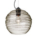 The Wave is a globe-shaped clear glass, with a romantic wrap of glass rope that spirals around the exterior. Our Trans-Smoke glass is a colored transparent blown glass. The seductive glow has a low key harmonious display that exudes a warm mood. When lit the glass is vitalizing as well as stylish. This blown glass is handcrafted by a skilled artisan, utilizing century-old techniques passed down from generation to generation. The cable pendant fixture is equipped with a 10' silver aircraft cable and AWM cordset, and a dome monopoint canopy. These stylish and functional luminaries are offered in a beautiful Black finish.
