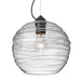 The Wave is a globe-shaped clear glass, with a romantic wrap of glass rope that spirals around the exterior. The clear blown glass is contemporary yet timeless, and will suit any classic or modern decor. When lit, the clear glass shimmers and sparkles with the accents from the light source. This blown glass combination is handcrafted by a skilled artisan, utilizing century-old techniques passed down from generation to generation. The cable pendant fixture is equipped with a 10' silver aircraft cable and AWM cordset, and a dome monopoint canopy. These stylish and functional luminaries are offered in a beautiful Black finish.