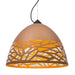 The Kiev Copper Pendant features a unique shade that melds the beauty of shimmering glass with the visual advantages of cut metal, which results in a compelling optical display in a smartly modern design. With random stenciled openings placed throughout the bottom portion of this pendant, the concealed light source focuses the eye through the multi-dimensional sightlines while allowing for a eye-catching sparkle from the exposed clear glass and dramatic play of light through the accents and onto adjacent surfaces. The cable pendant fixture is equipped with a 10' silver aircraft cable and AWM cordset, and a dome monopoint canopy. These stylish and functional luminaries are offered in a beautiful Black finish.