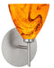 Mia has a classical bell shape that complements aesthetic, while also built for optimal illumination. Our Habanero glass is a warm toned cased glass, with inner opal and a glossy finish. The color of vibrant Persimmon is accented by flowing marbleized black lines, and nestled between the inner opal and outer clear layers. When lit the glass is vitalizing as well as stylish, that adds appeal to any environment. This blown glass is handcrafted by a skilled artisan, utilizing century-old techniques passed down from generation to generation. Each piece of this dcor has its own artistic nature that can be individually appreciated. The mini sconce is equipped with a decorative lamp holder mounted to either a low profile round or square canopy. These stylish and functional luminaries are offered in a beautiful Satin Nickel finish.