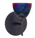 Divi has a classical bell shape that complements aesthetic, while also built for optimal illumination. Our Black Dicro Wavy glass is a blown glass with black striping on the glossy outside, and a technologically advanced dichroic coating applied to the inside. The coating contains multiple micro-layers of metals that create unique optical properties, which effectively alter both the reflected and transmitted light. So unlit, it appears like a mirror, when lit, it becomes translucent with an array of multicolored blue-purple effects. The mini sconce is equipped with a decorative lamp holder mounted to either a low profile round or square canopy. These stylish and functional luminaries are offered in a beautiful brushed Bronze finish.