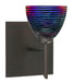 Divi has a classical bell shape that complements aesthetic, while also built for optimal illumination. Our Black Dicro Wavy glass is a blown glass with black striping on the glossy outside, and a technologically advanced dichroic coating applied to the inside. The coating contains multiple micro-layers of metals that create unique optical properties, which effectively alter both the reflected and transmitted light. So unlit, it appears like a mirror, when lit, it becomes translucent with an array of multicolored blue-purple effects. The mini sconce is equipped with a decorative lamp holder mounted to either a low profile round or square canopy. These stylish and functional luminaries are offered in a beautiful brushed Bronze finish.