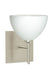 Brella has a classical bell shape that complements aesthetic, while also built for optimal illumination. Our White glass is a soft white cased glass that can suit any classic or modern decor. White has a very tranquil glow that is pleasing in appearance. The smooth satin finish on the clear outer layer is a result of an extensive etching process. This blown glass is handcrafted by a skilled artisan, utilizing century-old techniques passed down from generation to generation. The mini sconce is equipped with a decorative lamp holder mounted to either a low profile round or square canopy. These stylish and functional luminaries are offered in a beautiful Satin Nickel finish.