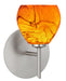 The Tay Tay is a compact handcrafted glass, softly radiused to fit gracefully into contemporary spaces. Our Habanero glass is a warm toned cased glass, with inner opal and a glossy finish. The color of vibrant Persimmon is accented by flowing marbleized black lines, and nestled between the inner opal and outer clear layers. When lit the glass is vitalizing as well as stylish, that adds appeal to any environment. This blown glass is handcrafted by a skilled artisan, utilizing century-old techniques passed down from generation to generation. Each piece of this dcor has its own artistic nature that can be individually appreciated. The mini sconce is equipped with a decorative lamp holder mounted to either a low profile round or square canopy. These stylish and functional luminaries are offered in a beautiful Satin Nickel finish.