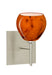 The Tay Tay is a compact handcrafted glass, softly radiused to fit gracefully into contemporary spaces. Our Habanero glass is a warm toned cased glass, with inner opal and a glossy finish. The color of vibrant Persimmon is accented by flowing marbleized black lines, and nestled between the inner opal and outer clear layers. When lit the glass is vitalizing as well as stylish, that adds appeal to any environment. This blown glass is handcrafted by a skilled artisan, utilizing century-old techniques passed down from generation to generation. Each piece of this dcor has its own artistic nature that can be individually appreciated. The mini sconce is equipped with a decorative lamp holder mounted to either a low profile round or square canopy. These stylish and functional luminaries are offered in a beautiful Satin Nickel finish.
