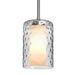 The Esa Clear Pendant is composed of an outer trans Clear glass cylinder, with an interesting dimple pattern blown throughout the glass and an inner opal cylinder for concealing the light source. The pleasing play of light through the dimple accents make for an interesting optical affect. The stem pendant fixture is equipped with an adjustable telescoping section, 4 connectable stem sections (3", 6", 12", and 18") and low Profile flat monopoint canopy. These stylish and functional luminaries are offered in a beautiful Satin Nickel finish.