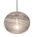 The Geno Smoke Vapor Pendant is a modern look composed of a transparent smoke elliptical shape European glass, with a mystical vapor-like patterning throughout to partially conceal the inner portion of the shade. The play of light through the vapor decor makes for a pleasing optical affect, enhanced by the glimpses of exposed light source positioned inside the shade. The stem pendant fixture is equipped with an adjustable telescoping section, 4 connectable stem sections (3``, 6``, 12``, and 18``) and low Profile flat monopoint canopy. These stylish and functional luminaries are offered in a beautiful Satin Nickel finish.