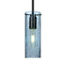 The Juni 10 Pendant is composed of a transparent Blue glass cylinder, with an interesting bubble pattern blown randomly throughout the glass. The pleasing play of light through the bubble accents make for a striking affect, along with the prominent display of the lamp filament behind the glass. The stem pendant fixture is equipped with an adjustable telescoping section, 4 connectable stem sections (3", 6", 12", and 18") and low Profile flat monopoint canopy. These stylish and functional luminaries are offered in a beautiful Black finish.