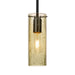The Juni 10 Pendant is composed of a transparent Gold glass cylinder, with an interesting bubble pattern blown randomly throughout the glass. The pleasing play of light through the bubble accents make for a striking affect, along with the prominent display of the lamp filament behind the glass. The stem pendant fixture is equipped with an adjustable telescoping section, 4 connectable stem sections (3", 6", 12", and 18") and low Profile flat monopoint canopy. These stylish and functional luminaries are offered in a beautiful Black finish.