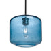 The Niles Blue is composed of a broad transparent blue glass cylinder, with an interesting bubble pattern blown randomly throughout the glass and exposed light source. The pleasing play of light through the bubble accents make for a striking affect, along with the popular theme of this transitionally designed pendant. The stem pendant fixture is equipped with an adjustable telescoping section, 4 connectable stem sections (3", 6", 12", and 18") and low Profile flat monopoint canopy. These stylish and functional luminaries are offered in a beautiful Black finish.