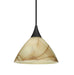 Domi has a classical bell shape that complements aesthetic, while also built for optimal illumination. Our Mocha glass is a pressed glass that features a cream color that is marbleized with brown. This décor is classic and can be used in various ways. When lit this gives off a light that is functional and soothing. The smooth satin finish on the clear outer layer is a result of an extensive etching process. This handcrafted glass uses a process where every glass is consistently produced using a press mold, keeping variations to a minimum. The 12V cord pendant fixture is equipped with a 10' coaxial cord with teflon jacket and an "Easy Install" Dome monopoint canopy. These stylish and functional luminaries are offered in a beautiful Black finish.