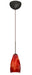The Karli features a softly radiused glass, that will gracefully blend into almost any decorating theme. Our Garnet glass is full of floating, vibrant red tones with a mix of black and white tones behind them. When the glass is lit the fiery color palette illuminates to exude a harmonious display. This dcor is created by rolling molten glass in small bits of deep red hues called frit along with black glass powders. The result is a multi-layered blown glass, where frit color is nestled between an opal inner layer and a clear glossy outer layer. This blown glass is handcrafted by a skilled artisan, utilizing century-old techniques passed down from generation to generation. Each piece of this dcor has its own artistic nature that can be individually appreciated. The 12V cord pendant fixture is equipped with a 10` coaxial cord with Teflon jacket and an "Easy Install" Dome monopoint canopy. These stylish and functional luminaries are offered in a beautiful brushed Bronze finish.