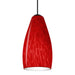 The Karli features a softly radiused glass, that will gracefully blend into almost any decorating theme. Our Red Cloud glass is full of floating, splashes of red tones over white that almost feels like a watercolor painting. This combination of color is crisp and timeless. This décor is created by rolling molten glass in small bits of red hues called frit. The result is a multi-layered blown glass, where frit color is nestled between an opal inner layer and a clear glossy outer layer. The handcrafted touch of a skilled artisan, utilizing century-old techniques passed down from generation to generation, creates variations in color and design that are to be appreciated. The 12V cord pendant fixture is equipped with a 10' coaxial cord with teflon jacket and an "Easy Install" Dome monopoint canopy. These stylish and functional luminaries are offered in a beautiful Black finish.
