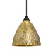 Eve is a classic bell-shaped shade of handcrafted glass, a shape that will stand the test of time. Our Stone Gold Foil glass is a clear blown glass with an outer texture of coarse sandstone, with distressed metal foil hand applied to the inside. Inspired by the elements of nature, the appearance of the surface resembles the beautiful cut patterning of a rock formation. The 12V cord pendant fixture is equipped with a 10' coaxial cord with teflon jacket and an "Easy Install" Dome monopoint canopy. These stylish and functional luminaries are offered in a beautiful Black finish.