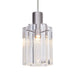 The Ice showcases a mesmerizing clear wavy cylinder glass that adds a touch of enchantment to any space. The light source shimmering in the center casts a captivating play of lights, beautifully accentuating the wavy design of the glass. The result is a stunning visual display that creates an ambiance of elegance and sophistication. The 12V cord pendant fixture is equipped with a 10' coaxial cord with teflon jacket and an "Easy Install" Dome monopoint canopy. These stylish and functional luminaries are offered in a beautiful Satin Nickel finish.