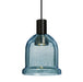 The Kiba Blue Mini Pendant is a transitional design composed of a transparent blue glass Bell, with an interesting bubble pattern blown randomly throughout the glass The pleasing play of light through each shade's bubble accents make for a striking affect, created by the concealed LED light source positioned at the top glass opening. The 12V cord pendant fixture is equipped with a 10' coaxial cord with teflon jacket and an "Easy Install" Dome monopoint canopy. These stylish and functional luminaries are offered in a beautiful Black finish.