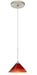 The Kona pendant features a wide cone-shaped glass, that demonstrates contemporary sensibilities. Our Sunset glass is a subtly prismatic pressed glass that features a translucent mix of deep red, which transitions to a lighter red from top to bottom. This dcor is energetic and can be used in various ways. When lit this gives off a light that is functional and vibrant. This glossy handcrafted glass uses a process where every glass is consistently produced using a press mold, keeping variations to a minimum. The 12V cord pendant fixture is equipped with a 10` braided coaxial cord with Teflon jacket and a low profile flat monopoint canopy. These stylish and functional luminaries are offered in a beautiful Satin Nickel finish.