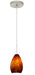 The Pera 6 is a curvy bell-bottomed shape, that fits nicely into any contemporary design. Our Amber Cloud glass is full of floating, vibrant warm tones that range from light gold to deep amber. When lit, the humid color palette illuminates to exude a harmonious display. This dcor is created by rolling molten glass in small bits of brown hues called frit. The result is a multi-layered blown glass, where frit color is nestled between an opal inner layer and a clear glossy outer layer. This blown glass is handcrafted by a skilled artisan, utilizing century-old techniques passed down from generation to generation. Each piece of this dcor has its own artistic nature that can be individually appreciated. The 12V cord pendant fixture is equipped with a 10` braided coaxial cord with Teflon jacket and a low profile flat monopoint canopy. These stylish and functional luminaries are offered in a beautiful Satin Nickel finish.