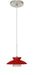 Trilo 7 is comprised of three complementary glass segments, resulting in a playful glass display. Our Red Matte glass is a vibrant primary red pressed glass, with a white inner layer. This dcor can add an edgy, classic, or contemporary feel to any room. When lit this gives off a light that is functional and energetic. The smooth satin finish on the clear outer layer is a result of an extensive etching process. This handcrafted glass uses a process where every glass is consistently produced using a press mold, keeping variations to a minimum. The 12V cord pendant fixture is equipped with a 10` braided coaxial cord with Teflon jacket and a low profile flat monopoint canopy. These stylish and functional luminaries are offered in a beautiful Satin Nickel finish.