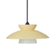 Trilo 7 is comprised of three complementary glass segments, resulting in a playful glass display. Our Champagne glass is a light yellow pressed glass, with a white inner layer. When lit this gives off a light that is functional and soothing. Champagne is a pleasing neutral color that suits almost any décor. The smooth satin finish on the clear outer layer is a result of an extensive etching process. This handcrafted glass uses a process where every glass is consistently produced using a press mold, keeping variations to a minimum. The 12V cord pendant fixture is equipped with a 10' braided coaxial cord with teflon jacket and a low profile flat monopoint canopy. These stylish and functional luminaries are offered in a beautiful Black finish.