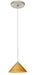 The Kona pendant features a wide cone-shaped glass, that demonstrates contemporary sensibilities. Our Mango Starpoint glass is pressed glass that features small points of clear that project from the mango outer and white inner finish, creating a star-light effect. When lit the glass is vitalizing as well as stylish. The gleaming color can accent any modern or classic dcor. This handcrafted glass uses a process where every glass is consistently produced using a press mold, keeping variations to a minimum. The 12V cord pendant fixture is equipped with a 10` braided coaxial cord with Teflon jacket and a low profile flat monopoint canopy. These stylish and functional luminaries are offered in a beautiful Satin Nickel finish.
