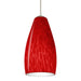 The Karli features a softly radiused glass, that will gracefully blend into almost any decorating theme. Our Red Cloud glass is full of floating, splashes of red tones over white that almost feels like a watercolor painting. This combination of color is crisp and timeless. This décor is created by rolling molten glass in small bits of red hues called frit. The result is a multi-layered blown glass, where frit color is nestled between an opal inner layer and a clear glossy outer layer. The handcrafted touch of a skilled artisan, utilizing century-old techniques passed down from generation to generation, creates variations in color and design that are to be appreciated. The 12V cord pendant fixture is equipped with a 10' braided coaxial cord with teflon jacket and a low profile flat monopoint canopy. These stylish and functional luminaries are offered in a beautiful Satin Nickel finish.