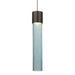 The Wanda 12 LED Pendant is composed of a narrow transparent Blue glass cylinder, with an interesting bubble pattern blown randomly throughout the glass. The pleasing play of light through the bubble accents make for a striking affect, along with the splash of concealed LED downlight makes the Wanda ideal for task oriented applications. The 12V cord pendant fixture is equipped with a 10' braided coaxial cord with teflon jacket and a low profile flat monopoint canopy. These stylish and functional luminaries are offered in a beautiful brushed Bronze finish.