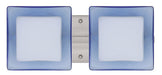 Alex has a simple, contemporary design that features handcrafted Opal glass, available with flat glass trim. This modern wall light offers flexible design potential for a variety of bath/vanity decorating schemes. Mount horizontally or vertically. ADA-Compliant. Our Trans-Blue colored blown glass complements the soft white Opal cased glass, which can suit any classic or modern decor. Opal has a very tranquil glow that is pleasing in appearance, as the Trans-Armagnac glass sparkles with the accents from that glow. The smooth satin finish on the opalâ≢s outer layer is a result of an extensive etching process. This blown glass combination is handcrafted by a skilled artisan, utilizing century-old techniques passed down from generation to generation. The vanity fixture is equipped with plated steel square lamp holders mounted to linear rectangular tubing, and a low profile square canopy cover. These stylish and functional luminaries are offered in a beautiful Satin Nickel finish.