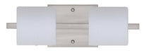 Contemporary Paolo enclosed half-cylinder design features handcrafted glass. This modern wall light offers flexible design potential for a variety of bath/vanity decorating schemes. Mount horizontally or vertically. ADA-Compliant. Our Opal glass is a soft white cased glass that can suit any classic or modern decor. Opal has a very tranquil glow that is pleasing in appearance. The smooth satin finish on the clear outer layer is a result of an extensive etching process. This blown glass is handcrafted by a skilled artisan, utilizing century-old techniques passed down from generation to generation. The vanity fixture is equipped with plated steel square lamp holders mounted to linear rectangular tubing, and a low profile square canopy cover. These stylish and functional luminaries are offered in a beautiful Satin Nickel finish.